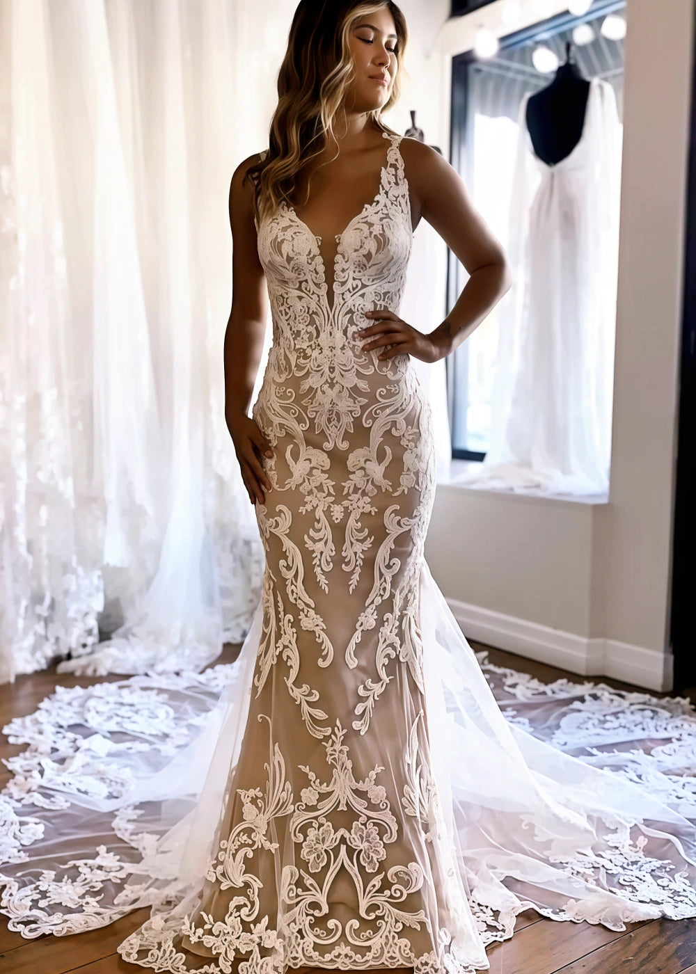 Whether you're planning a beach wedding, a garden ceremony, or a grand ballroom celebration, this dress is versatile enough to fit any setting. Its timeless design makes it a classic option that will never go out of style. One customer said, "I wore this dress for my beach wedding, and I felt like a true princess. The lace and the train looked amazing against the sandy backdrop."